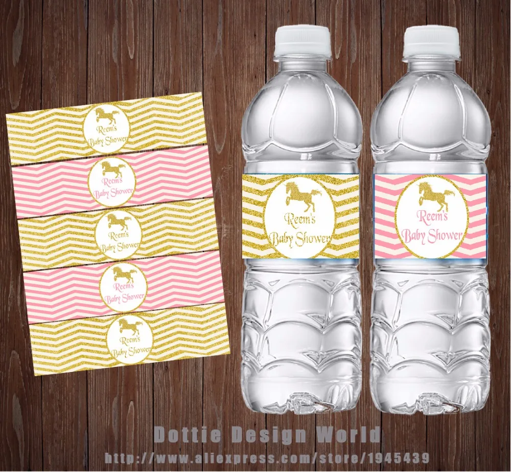20 pcs/lot Gold Glitter Unicorn Chevron Party Water Bottle Labels Candy Bar wrapper Baby shower ...